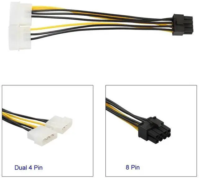18cm 8(6+2) Pin to Dual 4 Pin Graphics Video Card Power Cord Adapter Cable