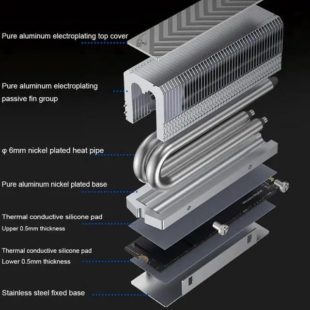 M. 2 2280 SSD Heatsink Solid State Drive Radiator 2xAGHeat Pipe SSD Cooling with Thermal Silicone Pad