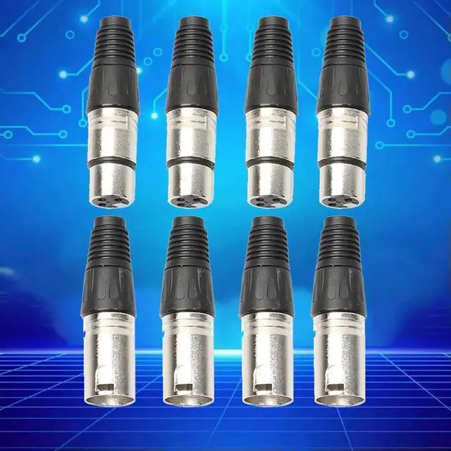8pcs Audio Microphone Connector 4 Male 4 Female 3Pin MIC Jack Plug Zinc Alloy Socket Panel Mount Chassis for Mixer Amplifier