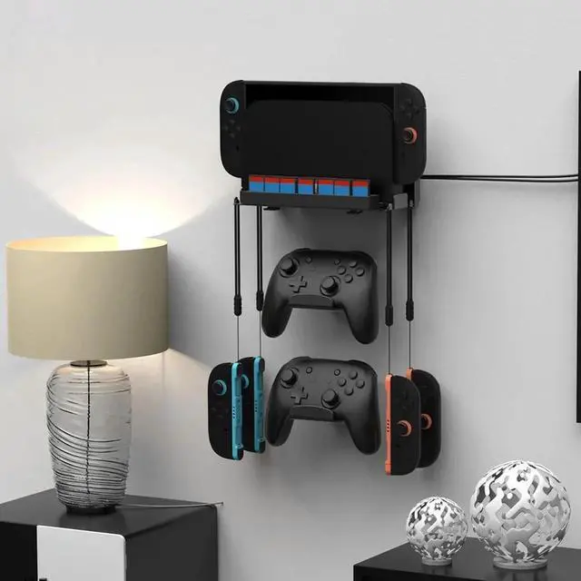 Wall Mount with Game Card Slots and 4 Joy-Con Hanger Console Holder Stand with 2 Controller Holder for Switch/OLED