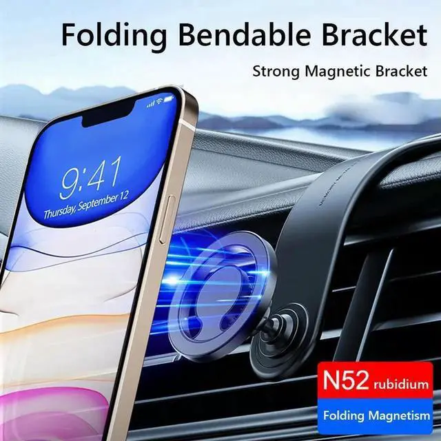 Magnetic Car Mount Memory Aluminum Alloy Bendable Detachable Car Phone Holder 360° Rotation for 15 14 13 Pro Max Mini