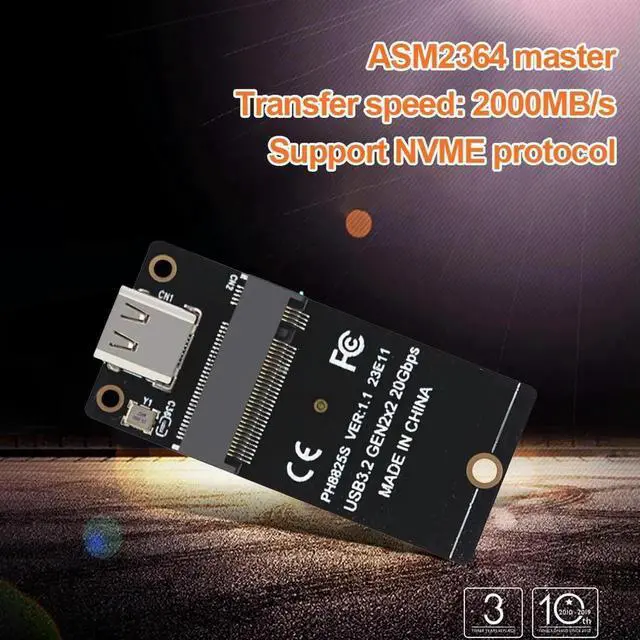M. 2 To Type C Riser Board USB 3.2 Gen2x2 NVME Conversion Board 20Gbps Adapter Board ASM2364 2000MB/s for SSD 2230/42/60/80