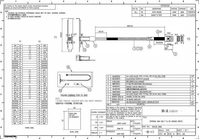 The internal parts of HD MiniSAS of L SFF-8644 are SFF-8643 conforming to SAS 3.0, and also support 12Gb/s SAS data transmission speed.