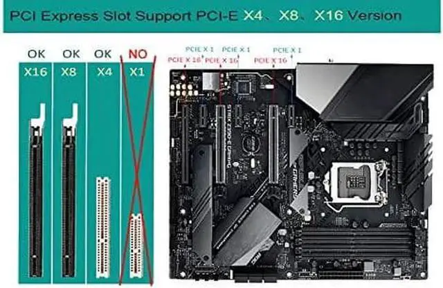 Compatible slot: PCIe x4, PCIe x8, PCIe x16,Please distinguish PCIe X16 from PCI Slot