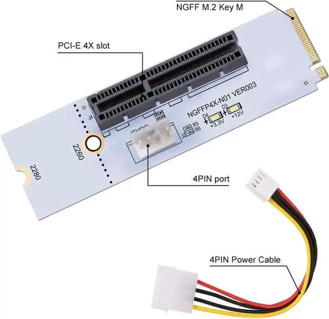 PCI-e 4x Card to NGFF M.2 M Key PCIe Slot Adapter
