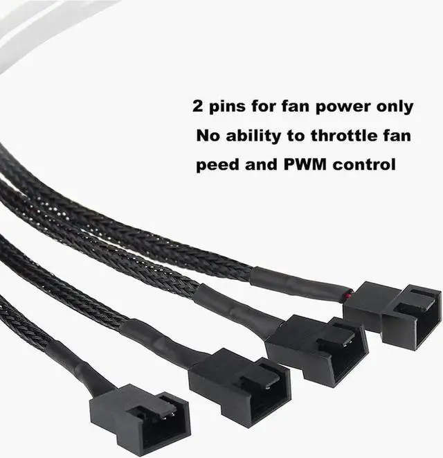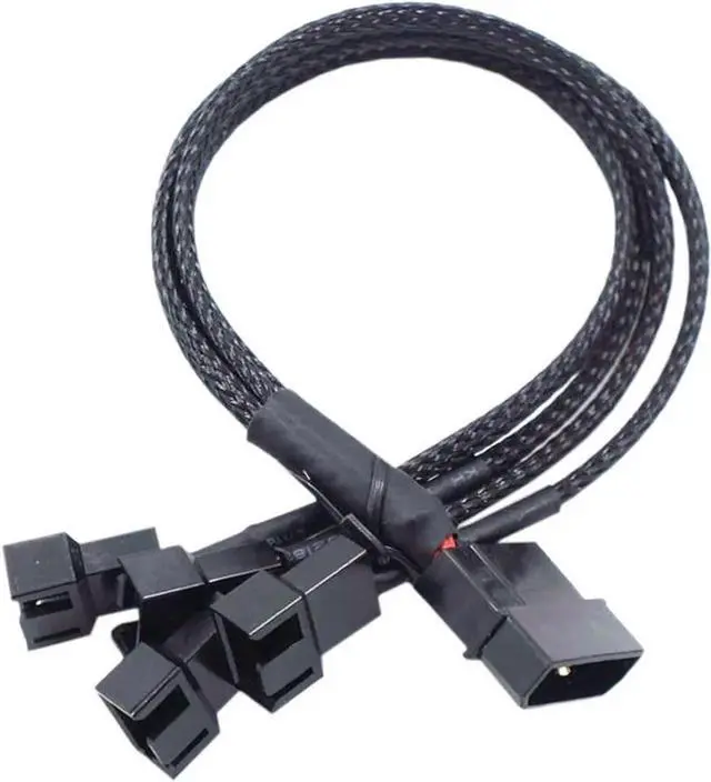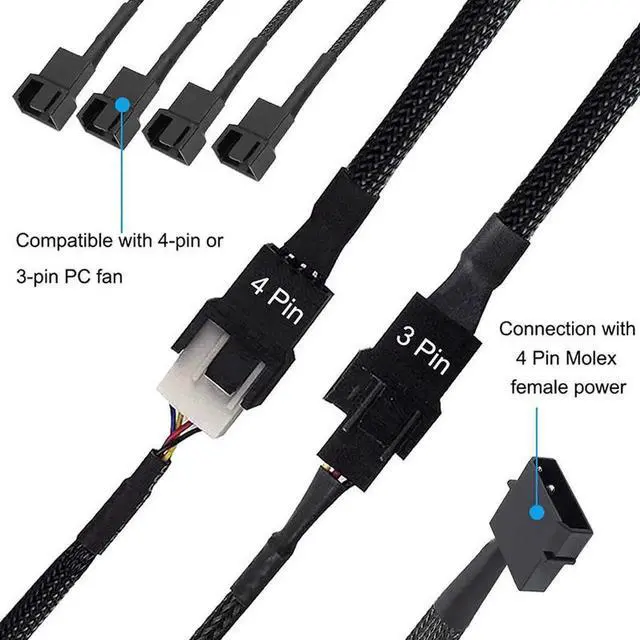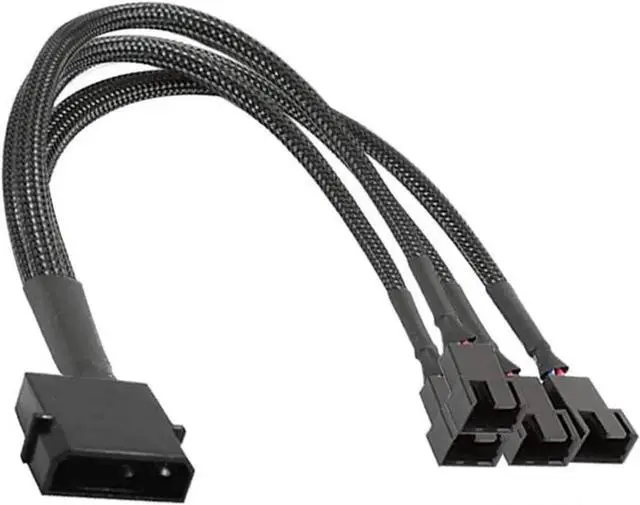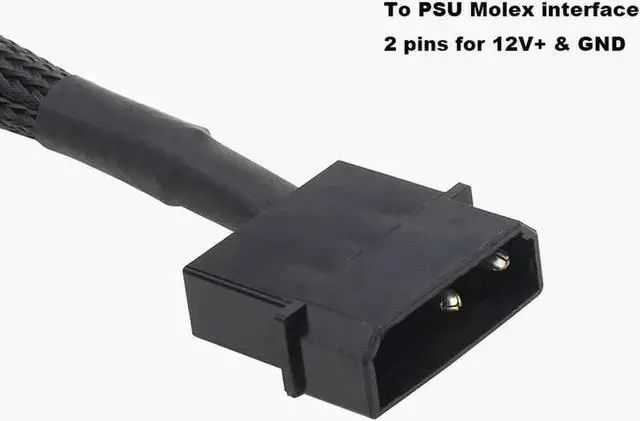 12V Molex to 2x 3pin / 4pin Fan Splitter Cable with Black Sleeved Jacket