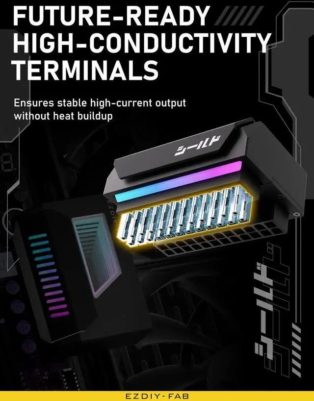 Shield 24-Pin Angle Adapter with Infinity Mirror ARGB Light ,ATX 24 Pin Power Connector, 5V 3pin ARGB Sync-180 Degree-Black