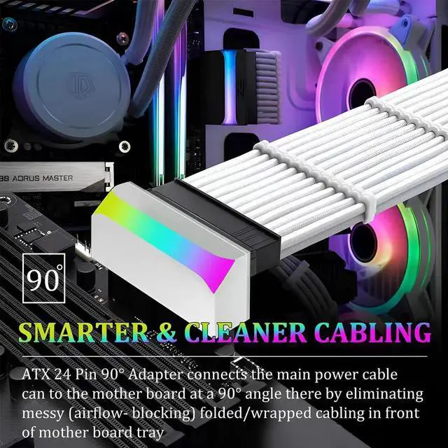 ATX 24-pin 90 Degree Power Connector 5V 3 Pin ARGB Female to Male Power Supply Power Adapter Connector for Computer/Gaming PC Motherboard.