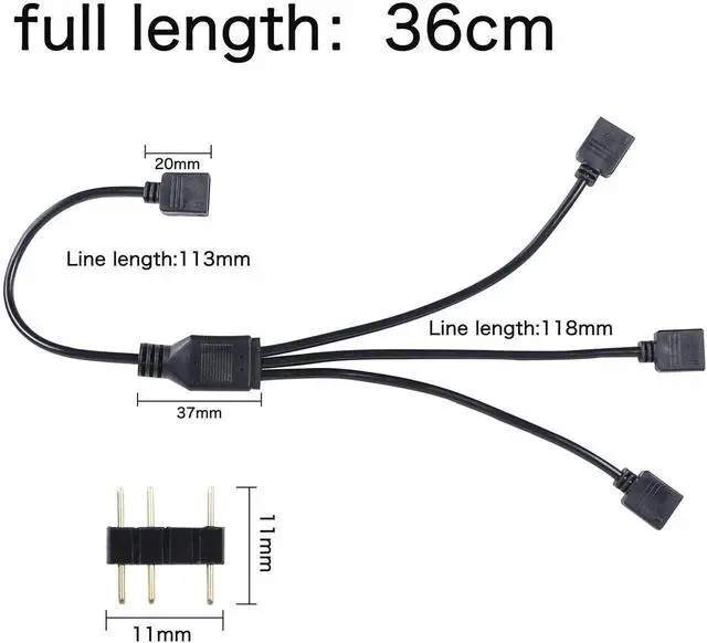 1PCS of ARGB 1 to 3 splitter cable 5V 3-pin (11.8 Inches)