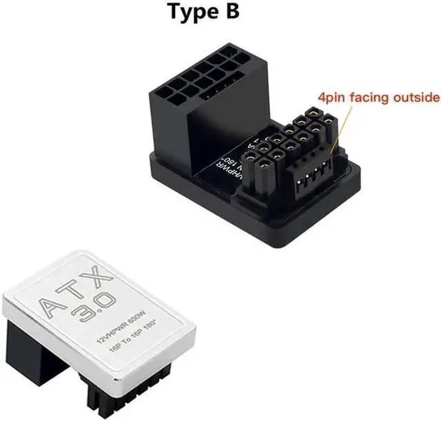 PCIe 5.0 Graphics Card ATX 3.0 Power Adapter 12VHPWR 12+4 16Pin 600W Power Supply Adapter Male To Female 180 Degree Turn Connector (black TYPE B)