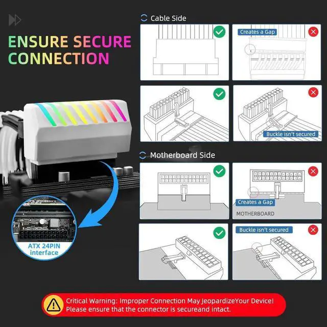 - [Efficient and Stable Power Transmission]High-quality materials and precision craftsmanship ensure lossless and efficient power transmission between the ATX 24Pin adapter and the motherboard, keeping the system stable even under high load operation, providing a solid backing for your high-performance hardwar