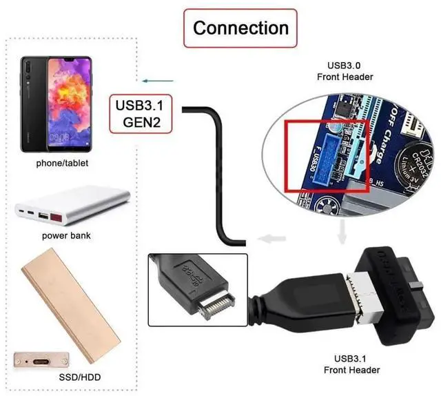 Overmold USB 3.1 Front Panel Socket Key-A Type-E to USB 3.0 20Pin Header Male Extension Adapter.