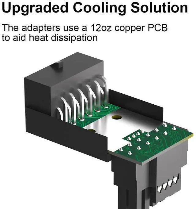 [90 Degree 12VHPWR 16Pin (12+4) Pin Adapter ]90 Degree Angle allows to work with your original power cable, and have a suitable extension direction, which can avoid the wear of the cable and the input port of GPU, extend the service life. and our 12VHPWR 90 Degree Adapter only produces 11mm from your graphics card, increases more space between your GPU and your side panel. This enables installation of super wide cards in more narrow chassis.