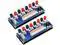 Each power rail has a corresponding ground connection; all of the power rails are brought out to a binding post.