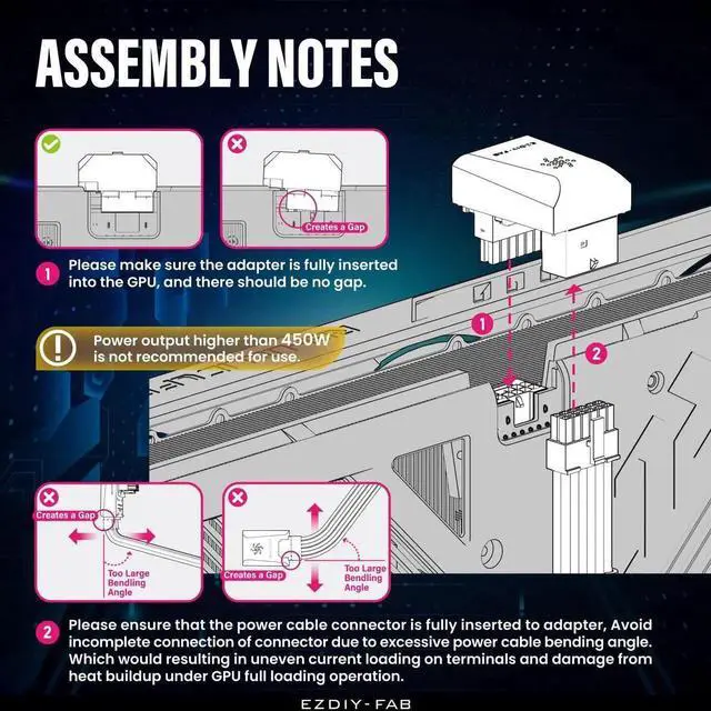 - The Angled Adapter has a low-profile design, extending just 23mm, which provides increased room and clearance between your graphics card and the side panel. This feature is ideal for compact chassis and simplifies the installation of large cards. Be sure to verify that there is at least a 23mm gap between the side panel and the GPU.