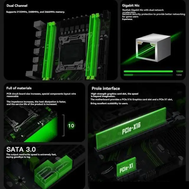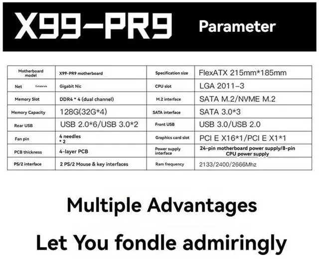 X99 PR9 Motherboard LGA 2011-3 Supports 4X DDR4 RAM Gigabit LAN SATA/NVME M. 2 Supports E5 26XX V3 CPU