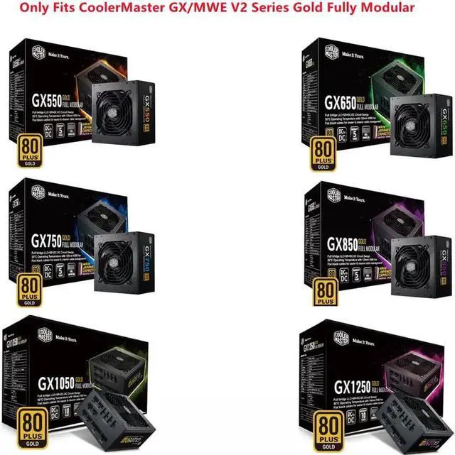 Advantage: 18AWG ribbon flat cable with 4.5 mm terminal, support 10A high current. FLEXIBLE & DURABLE to prevent corrosion and provide a long lifespan. The Cable Only Supports CoolerMaster GX/MWE V2 Series Gold Fully Modular 550W 650W 750W 850W 1050W 1250W CoolerMaster GX550/MWE V2 Gold 550W (MPE-5501-AFAAG) CoolerMaster GX650/MWE V2 Gold 650W (MPE-6501-ACAAG) CoolerMaster GX750/MWE V2 Gold 750W (MPE-7501-ACAAG) CoolerMaster GX850/MWE V2 Gold 850W (MPE-8501-ACAAG) CoolerMaster GX1050/MWE V2 Gold 1050W (MPE-A501-AFCAG) CoolerMaster GX1250/MWE V2 Gold 1250W (MPE-C501-AFCAG) NOT for MWE GOLD Series and other brands and models. The pinout of modular cables is only standardized on the device's side (hard drive, motherboard, graphics card). The pinout of power supply side are NOT standardized and Universal. Different PSU brands or even different series within a band can or may use different pinouts. Never mix modular or semi-modular PSU cables between power supplies. Mixing Modular PSU Cables may damage power supply, PCB board or other attached components.