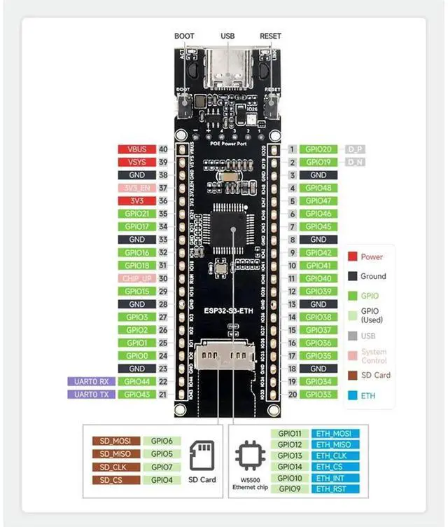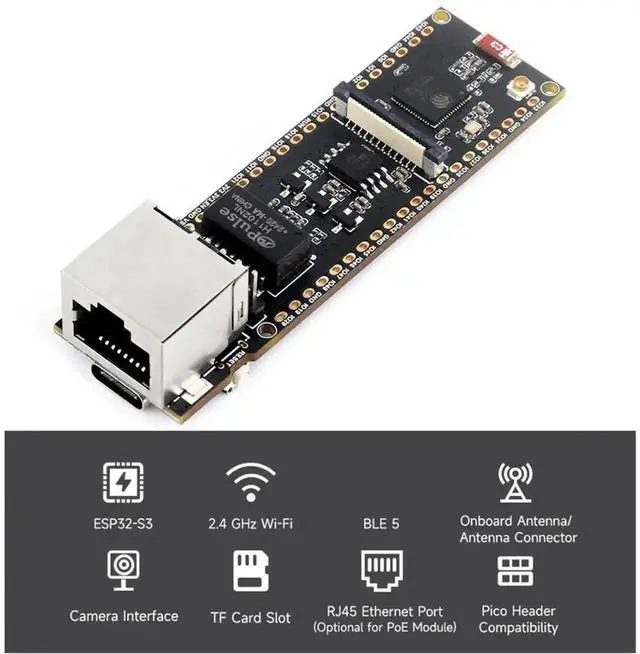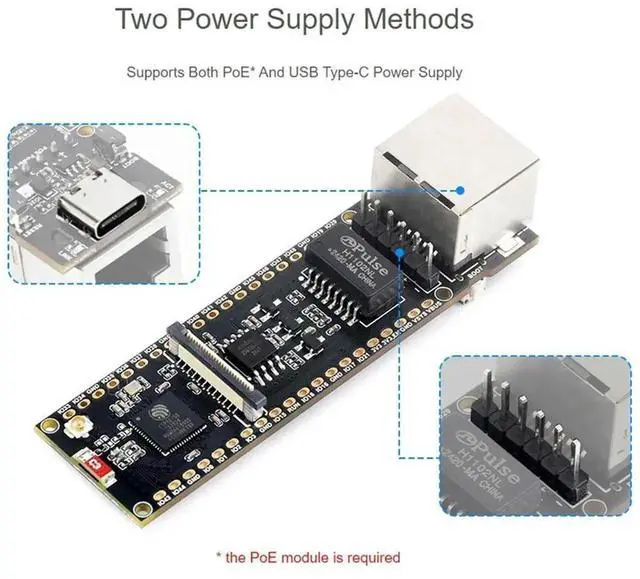 ESP32-S3-POE-ETH ESP32-S3 Ethernet Development Board Support PoE Dual-Core Wi-Fi and Bluetooth Wireless USB Type-C Port