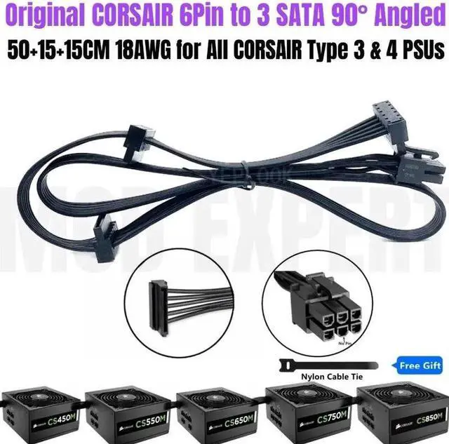 Package List: 1x 6Pin to 3 SATA 90°Angled for Corsair Power Supply, 1x free gift cable tie.
