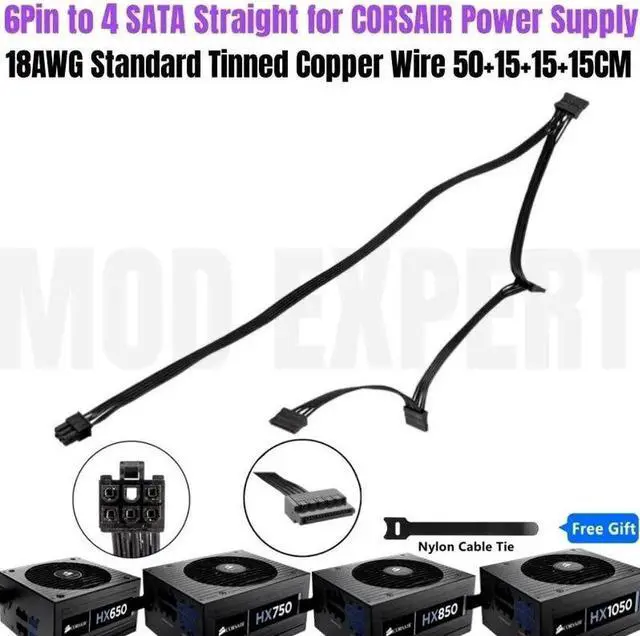 Package List: 1x 6Pin to 4 SATA Straight for Corsair Power Supply, 1x free gift cable tie.