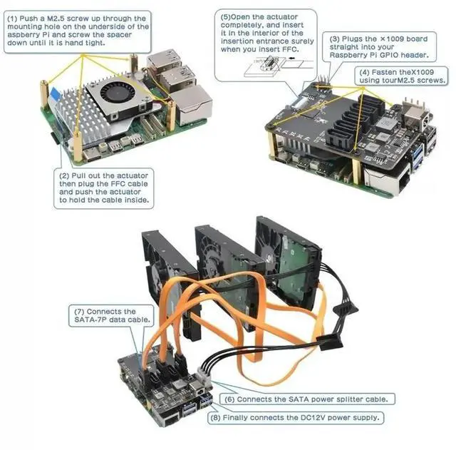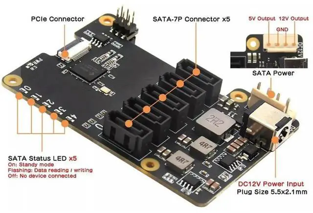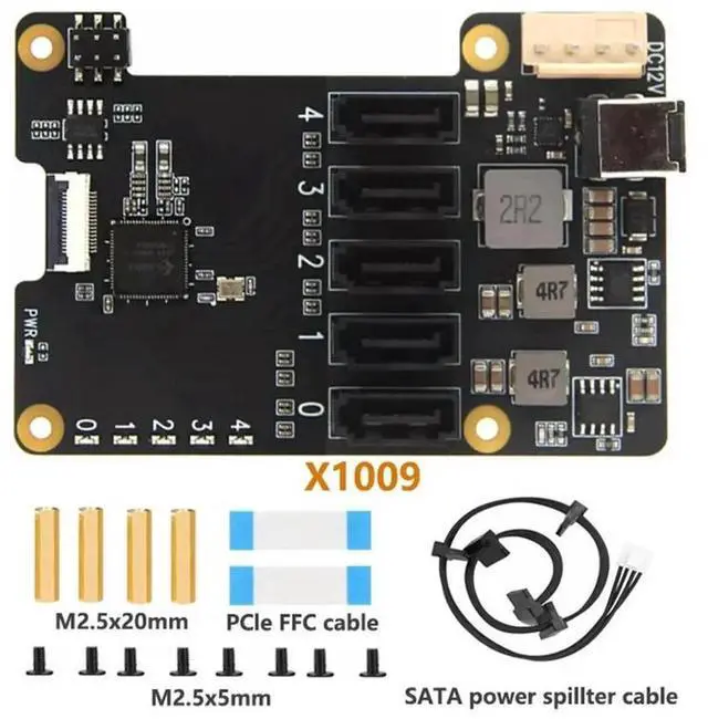X1009 PCIe to 5-Port SATA Shield HDD Expansion Board SATA 3.0 Expansion Board for Raspberry Pi 5