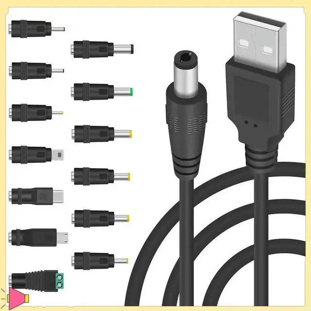 5V DC 5.5 2.1M m Jack Charging Cable Power Cord, USB To DC Power Cable With 13 Interchangeable Plugs Connectors Adapters