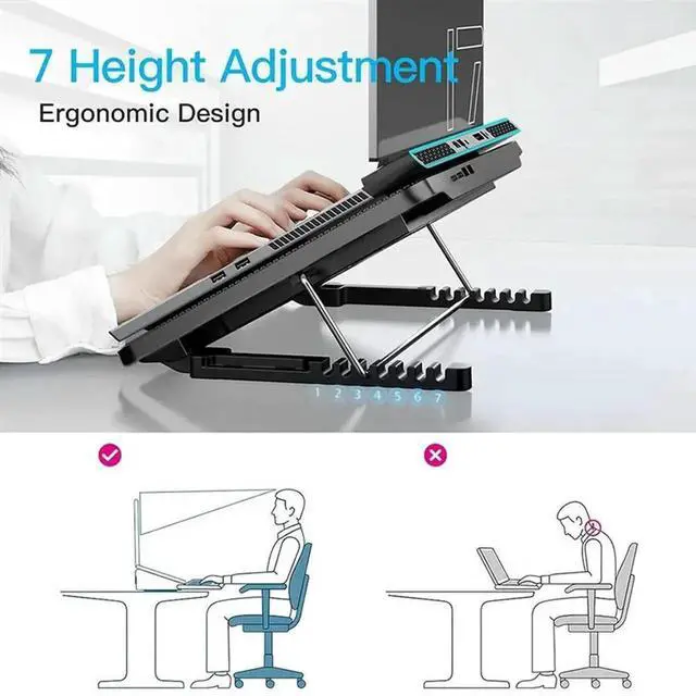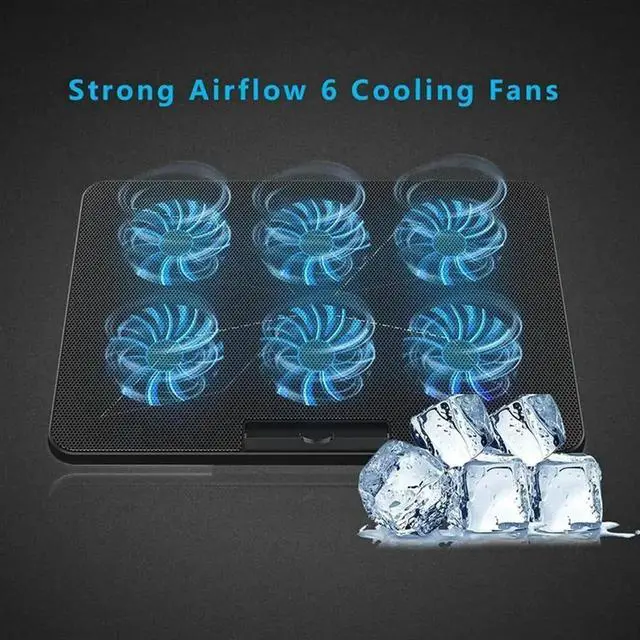 Laptop Cooling Pad Laptop Cooler With 6 Quiet Fans 7 Height & Wind Speed Adjustable 2 USB Port & Phone Holder