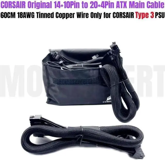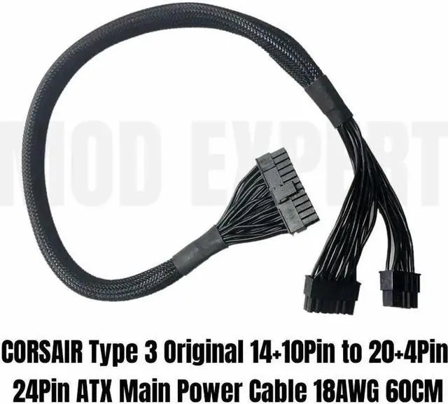 Original 14+10Pin to 20+4Pin 24P ATX Modular Power Cable for CORSAIR HX750i, HX850i, HX1000i, HX1200i HXi Type 3 PSUs 18AWG 60CM