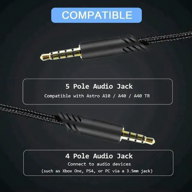 Audio Cable Inline Mute for Astro A10/A30/A40/A40TR/A50 Gaming Headphones Audio Line Console Cable Wire for PS5/PS4 Controller