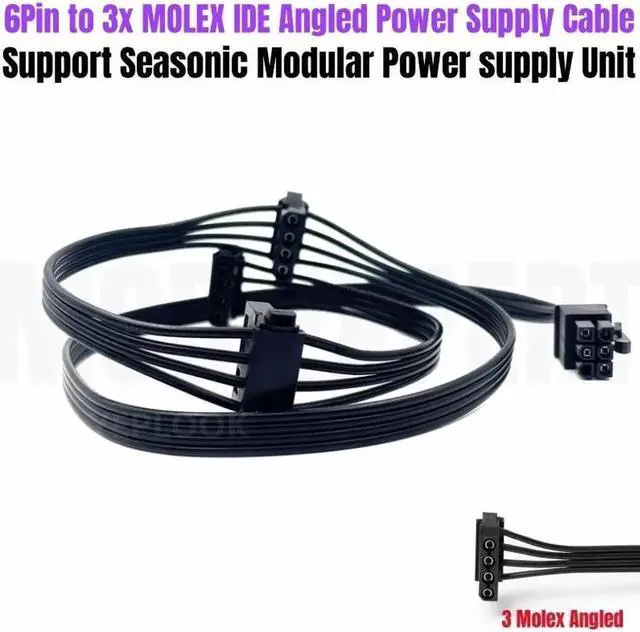Package List: 1x Seasonic 6Pin to 3 Molex Angled, 1x free gift nylon cable tie.