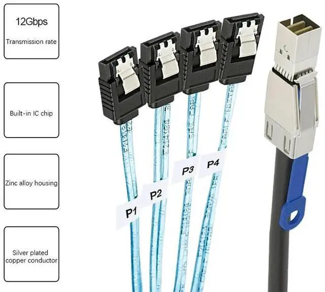 Mini SAS HD SFF-8644 To 4 X SATA 7Pin Hard Disk Cable 12Gbps Server External Hard Disk High-Speed Cable 3.33TF /1M