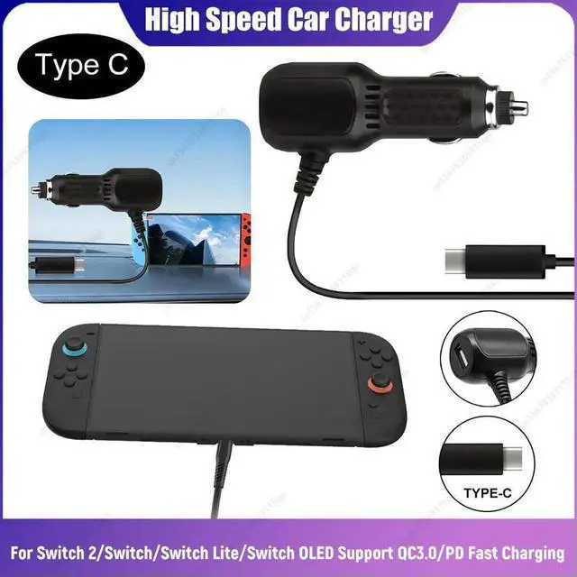 For Switch 2 High Speed Car Charger Fast Charging Adapter Cable Support QC 3.0 PD USB C Charger Cable for Switch for Switch OLED