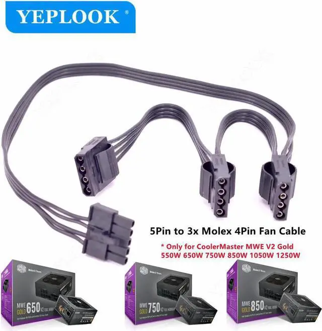 5Pin to 3 Molex 4Pin IDE Straight, 5Pin to 4Pin Fan Cable 50+15cm+15cm 18AWG For CoolerMaster GX/MWE V2 Series GX550 GX650 GX750 GX850 GX1050 GX1250 550W 650W 750W 850W 1050W 1250W Gold Fully Modular * Made of high quality plastic material, heat resistant, not easy aging, very durable.