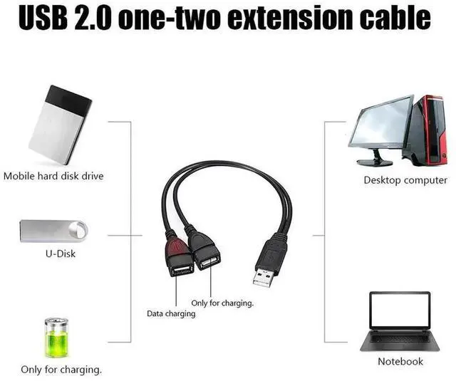 Portable 30cm USB 2.0 to Dual USB Male to Female Y Splitter HUB Extension Cable