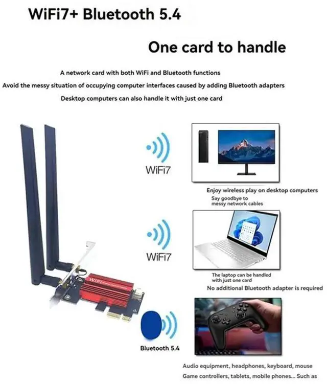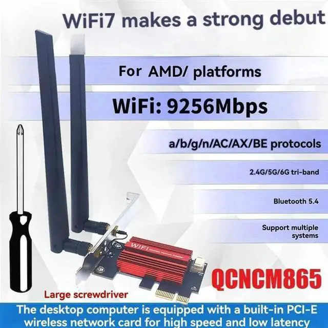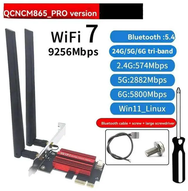 7 QCNCM865 PCI-E Adapter Card Kit 9256Mbps Tri Band 2.4G /5G/6Ghz BT 5.4 Desktop Wireless Network Adapter For Win10/11