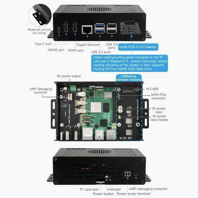 Multi-Functional All-In-One Mini-Computer Kit Designed for Raspberry Pi 5, Aluminum Alloy Case for PCIe Adapter C