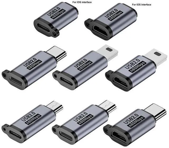 8PC Type C/Micro USB Female To 8 Pin Male Converter 480Mbps USB C/8 Pin To Micro USB Adapter 18W/12W for Mobile Phone Tablet Laptop