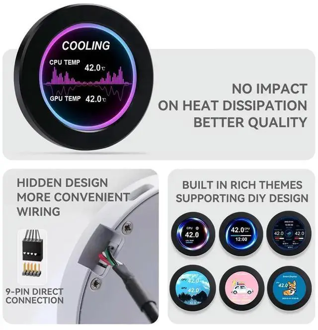 2.1 Inches Water-Cooled Secondary Screen Ips Round Screen Water-Cooled Chassis Built-In Screen Monitor Computer Status Durab