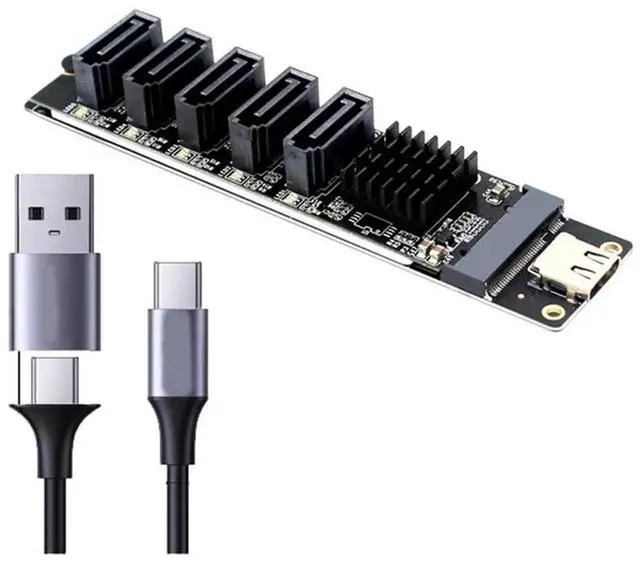 • TYPE-C To SATA3.0 5 Ports Adapter Converter Card 6Gbps USB10G JM575+JMS580 For SATA SSD HDD Expansion