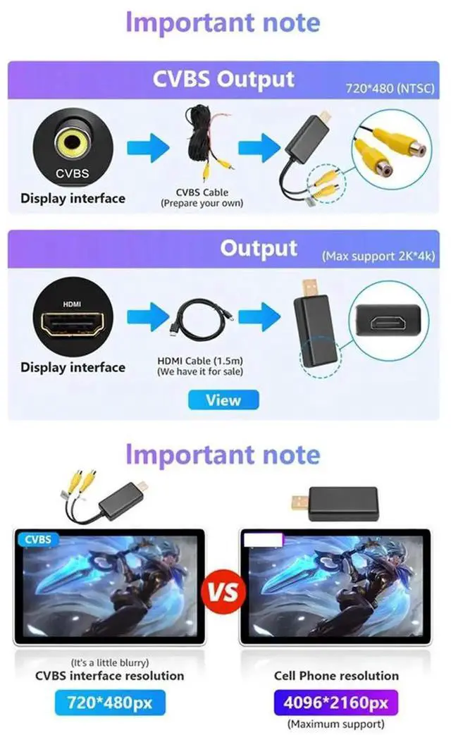 USB to CVBS RCA Video Output Adapter Box Interface Connect to Monitor Display Device for Android Radio Multimedia (A)