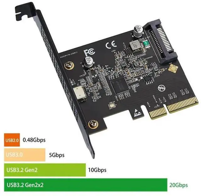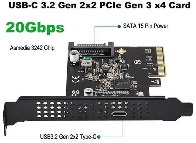 Expansion Card 3.2 Gen 2X2 PCI-E Gen 3 X4 20Gbps Asmedia ASM3242 Chipset With SATA 15 Pin Power