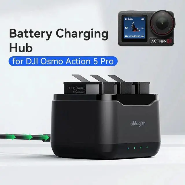 3 Channel Charger W/ Micro SD Slots & Type C Cable Charge Station for Osmo Action 5 Pro Accessories