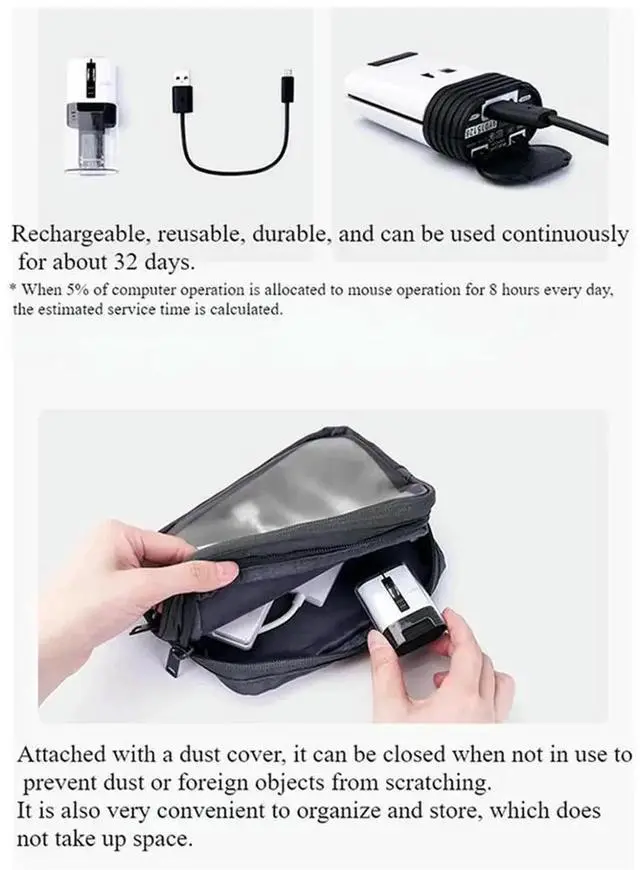 Mini Portable Wireless Bluetooth Mouse Chargeable Mute Light Weight Long Endurance For PC Office Laptop