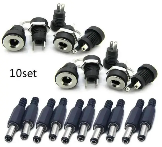 20PCS (10Pairs) DC12V 5.5 x 2.1 mm Plastic Male Plugs DC022 DC Power Socket Female Jack Screw Nut Panel Mount Connector Adapter