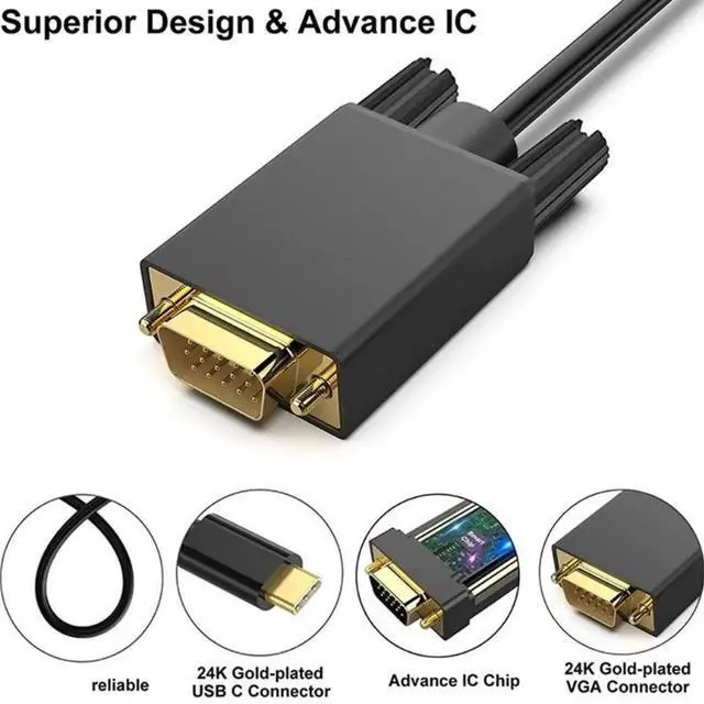 JAENFONG USB C to VGA adapter usb type c cable to vga for macbook air macbook pro Tablet laptop Monitors input usb-c cable to vga 1080P (10FT/3M)