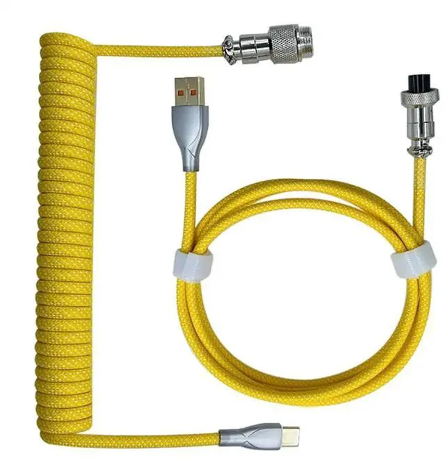 Convert USB data cable mechanical keyboard winding cable aviation cable game keyboard cable spring cable yellow