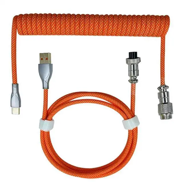 USB to USB data cable mechanical keyboard reel aviation cable game keyboard cable spring cable purple
