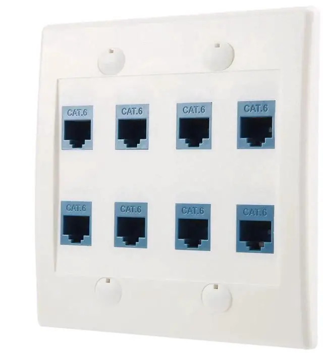Ethernet Wall Plate 8 Ports Dual Group 6 RJ45 Keystone Jack Network Cable Panel Female to Female