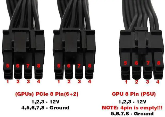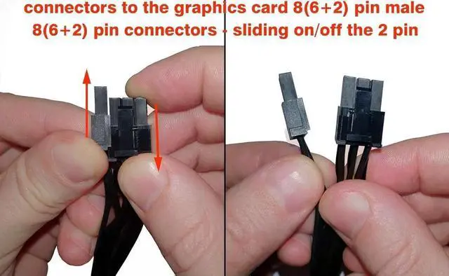 Compatible with 6-pin & 8-pin graphics cards from popular manufacturers from ASUS,ASRock,Radeon,Sapphire,EVGA and Gigabyte. NOTE - The 8 pin (6+2) ends could be used as 6 pin or 8 pin end by sliding on/off the 2 pin !!!