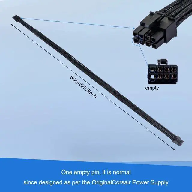 Product Features: Length (including connector): 25.5 inches (65 cm), Gauge: 1007-18AWG (standard copper wire with tin coating), can not be used for really high performance graphics cards (only suitable for graphics cards, not for motherboard).
